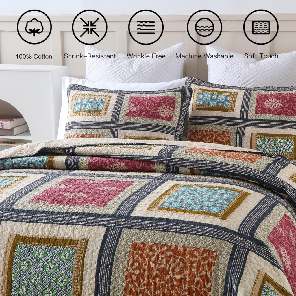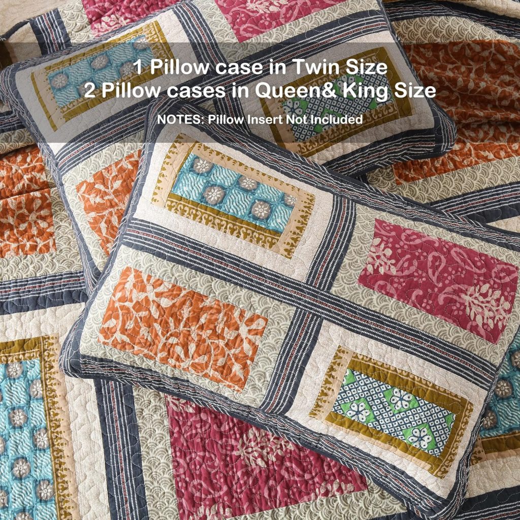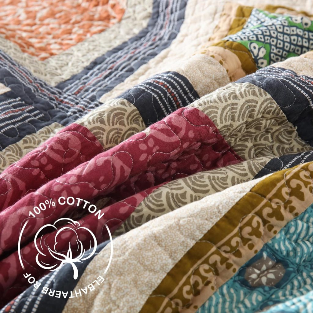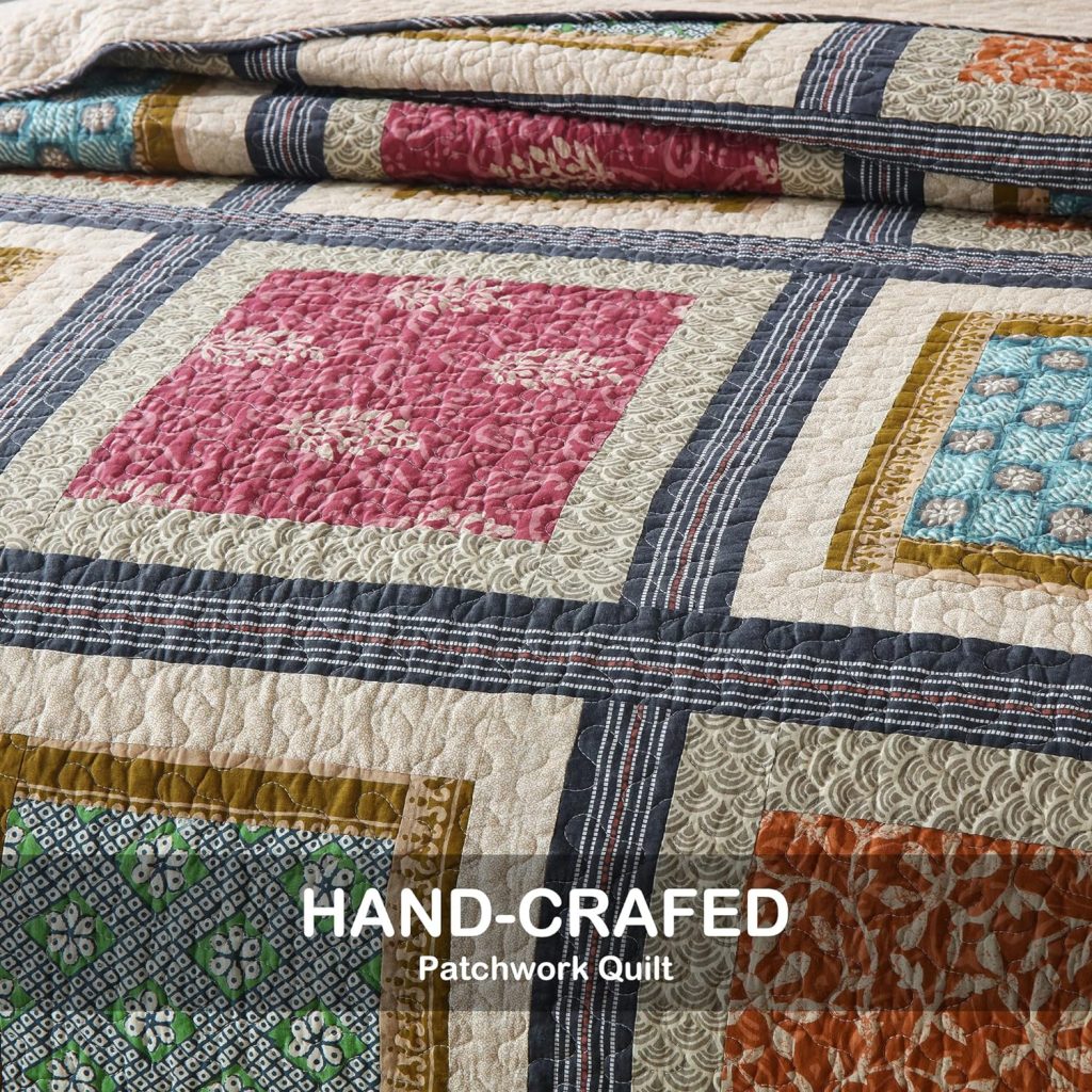 2. Color Coordination: The quilt’s patchwork pattern incorporates a variety of colors, making it easy to coordinate with your existing decor. Whether you have neutral tones or vibrant accents, this quilt complements a wide range of color schemes.