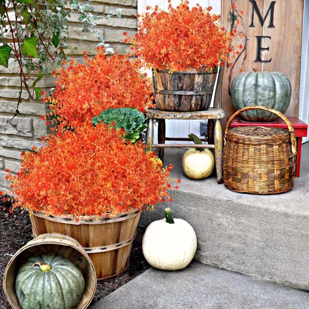 Order your!20 Bundles Outdoor Artificial Fall Flowers Plants Fall Decorations – UV Resistant Plastic Flowers for Outside Faux Plants for Home Garden Summer Decorations