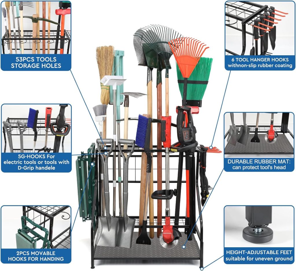 Get yours today!Garden Tool Organizer for Garage, Yard Tool Storage, Garden Tool Rack, for Shed Home Outdoor, Up to 58 Long-Handled Tools, Garden Tool Stand, Heavy Duty Steel, Black